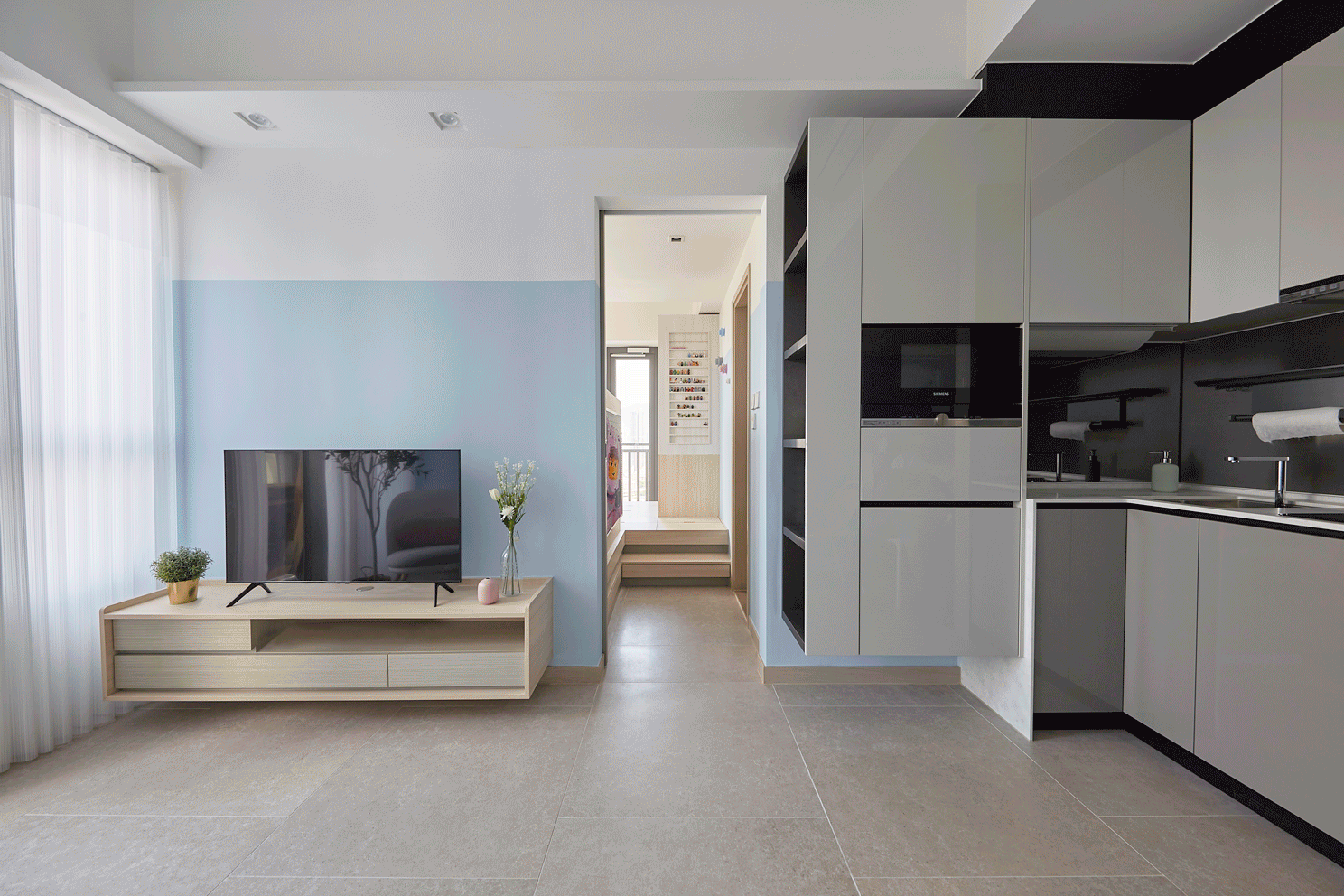 The owners of this project are a young couple who are busy with work on weekdays and desire a relaxing home environment. They are also avid Lego enthusiasts who enjoy building Lego models together and creating multi-dimensional Lego art that produces different effects when viewed from different angles. Therefore, they wanted their new home to incorporate a place where they could showcase their Lego interests. The unit of this project is not large, originally designed as a two-bedroom layout, but it felt cramped and lacked sufficient light.