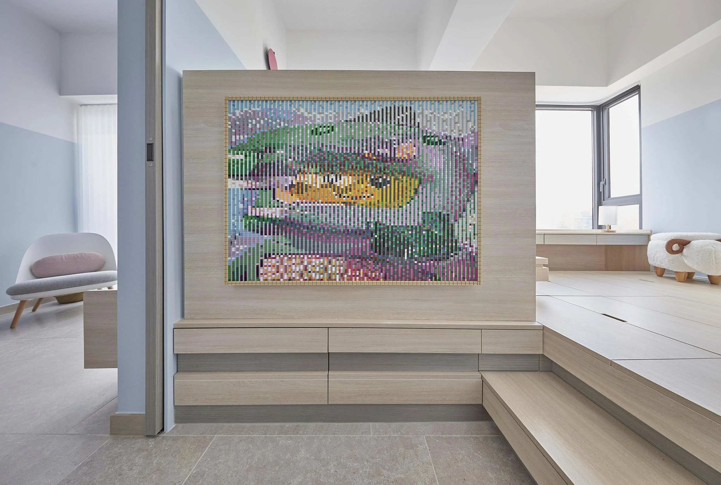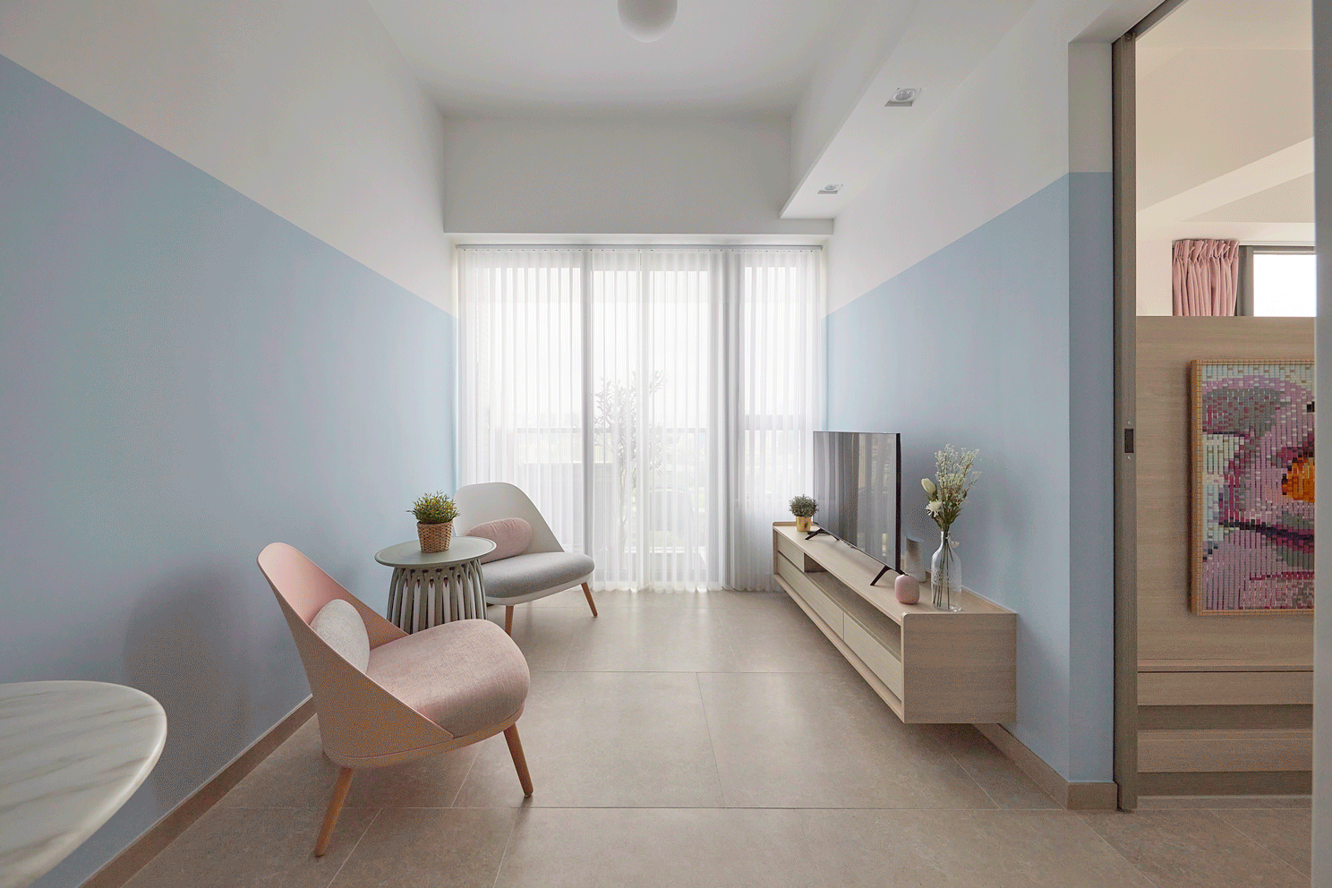 This project, "Lego Homeland," combines the playful fun of Lego with a transparent and bright Scandinavian style. The contrast between blue and white, warm and cool collisions of pink art, along with delicate and small designs, create a fashionable and comfortable feeling as if in a boutique hotel. It becomes a place where one can forget about worries, with brightness and transparency, and experience a natural and simple home after a hard day's work.