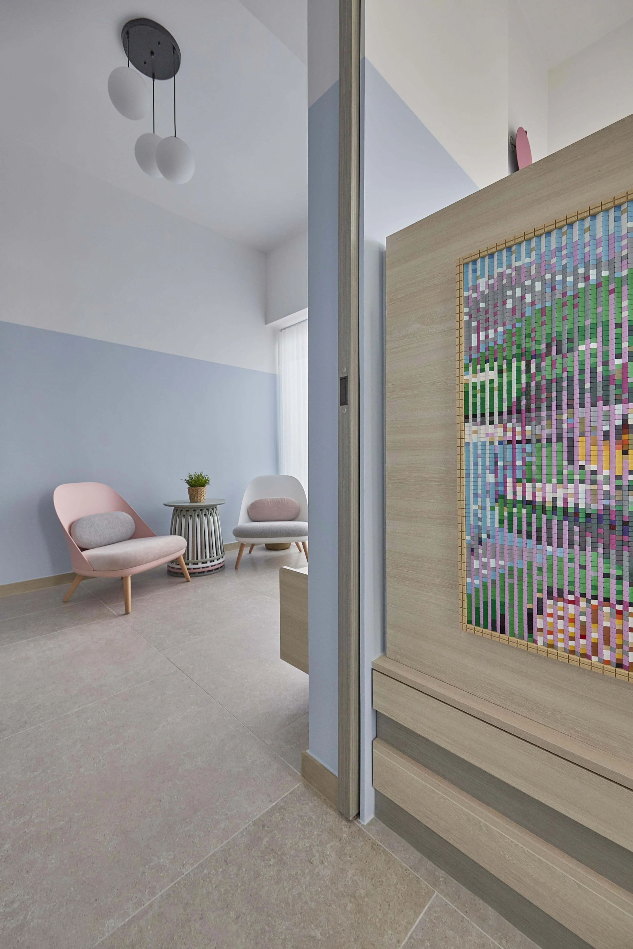 本案「樂高之寓 」以樂高童趣為引,配合北歐系通透明亮格調,以藍白對比與粉色藝術的冷暖踫撞及巧緻的精小設計,打造出仿如置身精品酒店的時尚舒適感,亦成為每日辛勞工作後一個可忘卻煩惱、明亮通透、質樸自然的家。